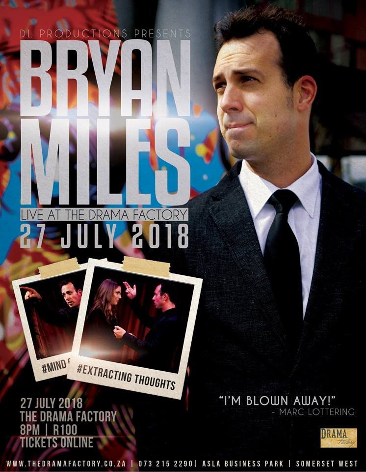 Bryan can seemingly influence and predict human behaviours. By using his skillset of magic, suggestion and psychology – he is able to theatrically manipulate your perception of the world. “Bryan Miles is amazing!” Jack Parow (Musician)