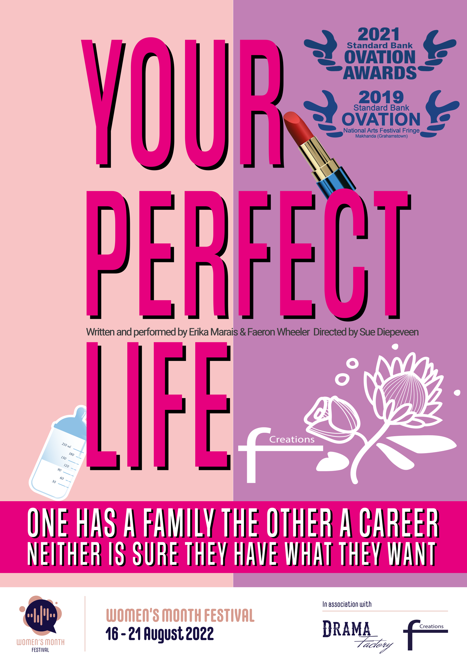 Your Perfect Life is a poignant and funny look at how life can take unexpected turns and how society judges us for dealing with it the best way we can. It’s also the recipient of two Standard Bank Ovation Awards - 2019 and 2021.