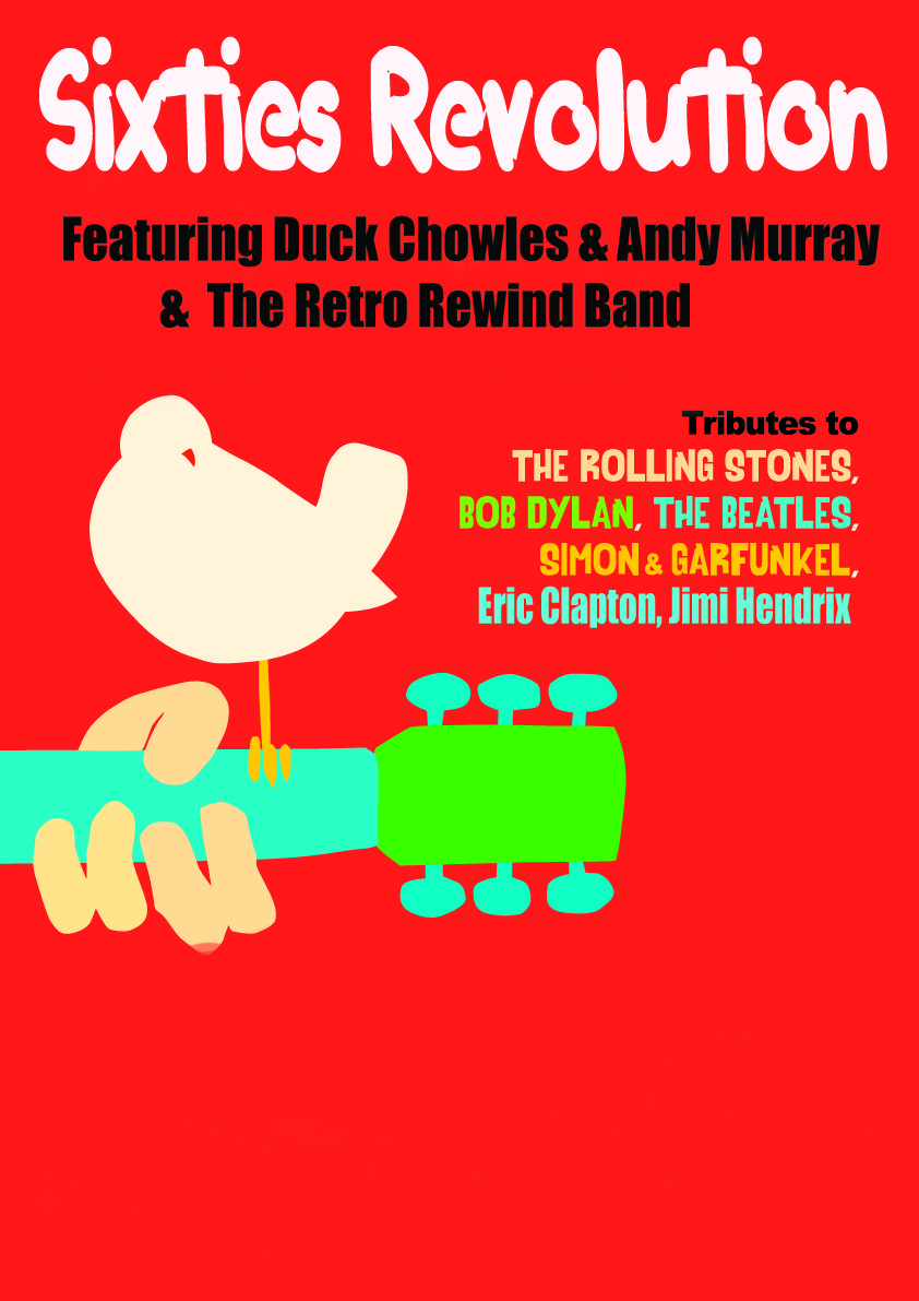 Duck Chowles, Andy Murray & The Retro Rewind Band brought you the highly-acclaimed, “Simon & Garfunkel meets The Beatles” show. Now they are back to pay tribute to a decade, the ‘60s, that marked a time when pop music became more than a teenage fad, but an important art form in its own right, as its sound tracked the hippie heyday & the Vietnam War.